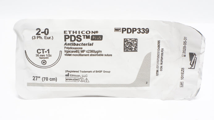- Ethicon PDP339 2-0 PDS Plus Violet Monofilament, CT-1, 36mm 1/2c Taper, 27inch