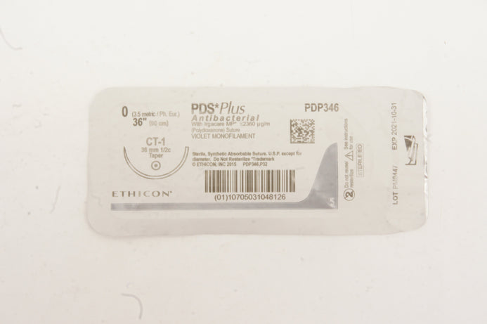 - Ethicon PDP346 0 PDS Plus VIOLET MONOFILAMENT CT-1 36mm 1/2c Taper, 36inch