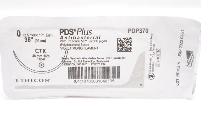 - Ethicon PDP370 0 PDS Plus Violet Monofilament, CTX, 48mm 1/2c Taper, 36inch