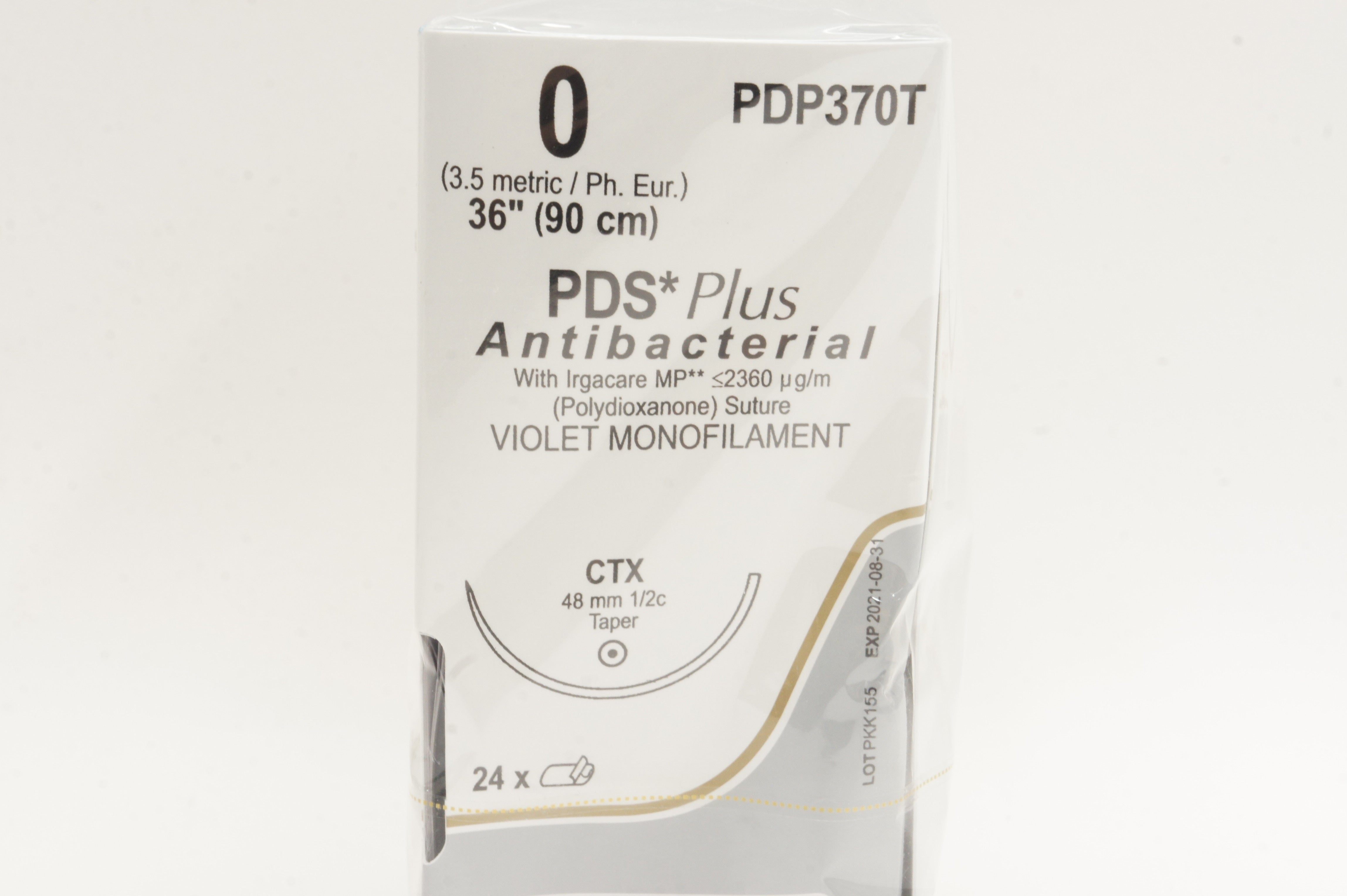 Ethicon PDP370T 0 PDS Plus Antibacterial With Irgacare MP ≤2360 µg/m (Polydioxanone) Suture Violet Monofilament CTX 48mm 1/2c Taper 36 inch