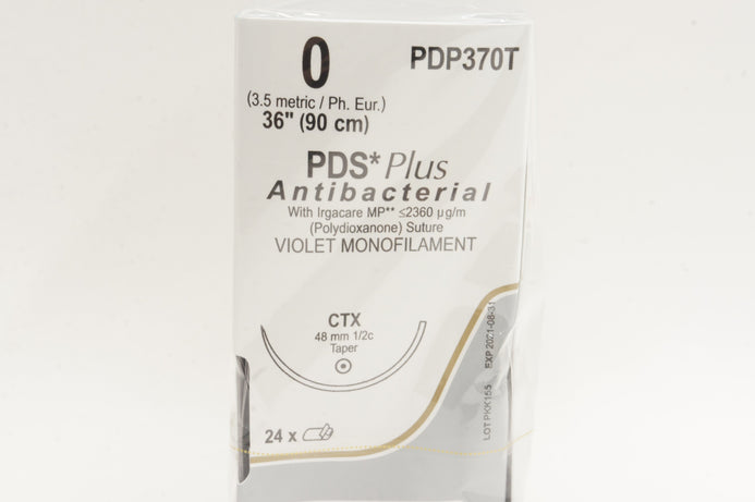 Ethicon PDP370T 0 PDS Plus Antibacterial Stre CTX 48mm 1/2c 36inch - Box of 24