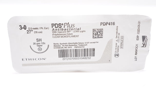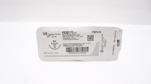 Ethicon PDP416 3-0 PDS Plus Polydioxanone Stre SH 26mm 1/2c Taper, 27inch (x)