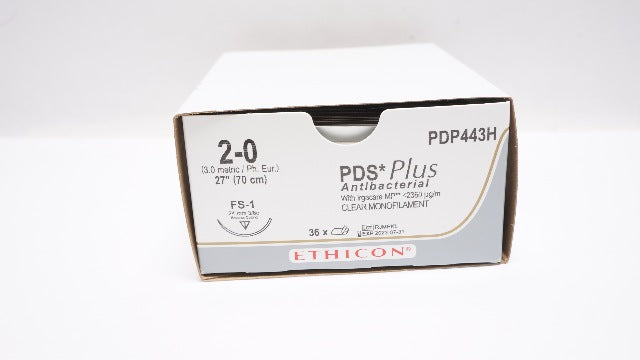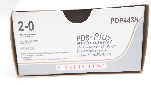 Ethicon PDP443H 2-0 PDS Plus Antibacterial With Irgacare MP ≤2360µg/m Clear Monofilament FS-1 24mm 3/8c Reverse Cutting 27inch