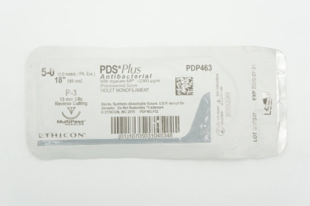 Ethicon PDP463 5-0 PDS Plus, P-3, 13mm 3/8c Reverse Cutting, 18inch (x)