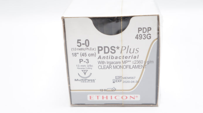 - Ethicon PDP493G 5-0 PDS Antibacterial Stre P-3 13mm 3/8c 18inch (x) - Box of 12