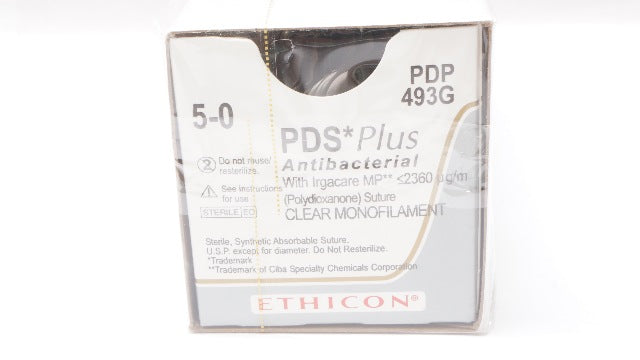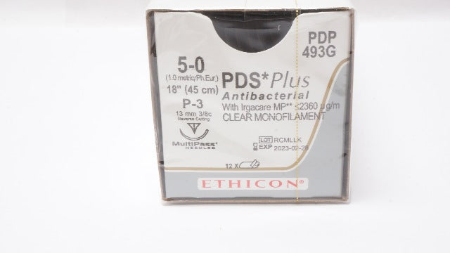 Ethicon PDP493G 5-0 PDS+ Polvdioxanone Stre P-3 13mm 3/8c Ndles 8In-Box of 12(x)