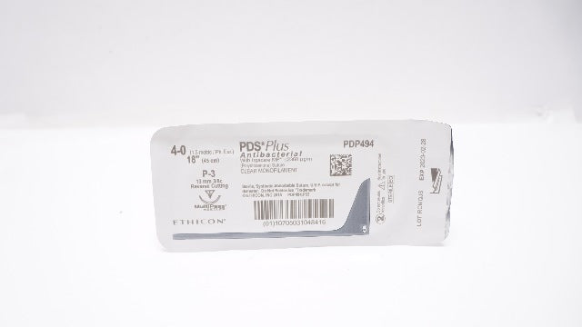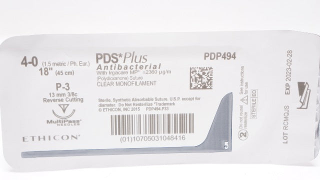 - Ethicon PDP494 4-0 PDS Plus Stre P-3 13mm 3/8c Reverse Cutting, 18inch (x)