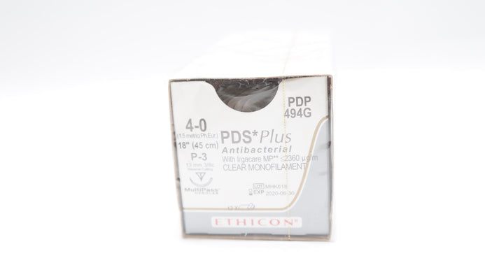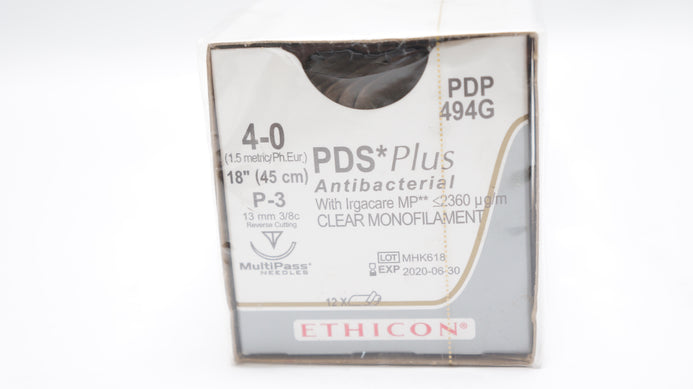 Ethicon PDP494G 4-0 PDS Plus Antibacterial With Irgacare MP ≤2360µg/m Clear Monofilament Suture P-3 13mm 3/8c Reverse Cutting 18inch