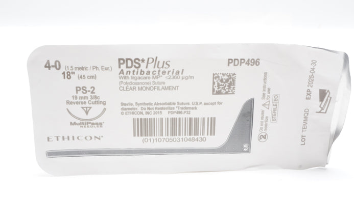 - Ethicon PDP496 4-0 PDS Plus Stre PS-2 19mm 3/8c Reverse Cutting 18in