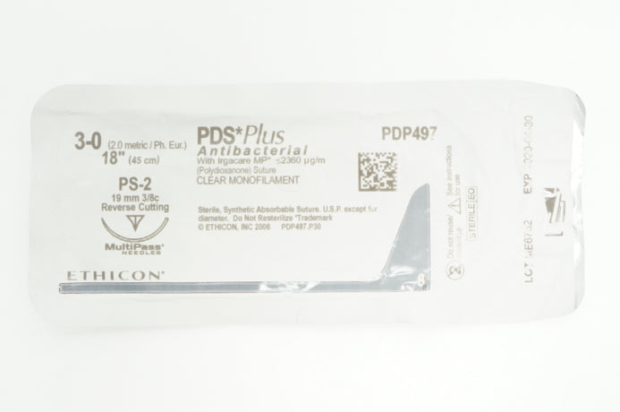 Ethicon PDP497 3-0 PDS Plus PS-2, 19mm 3/8c Reverse Cutting, 18inch (x)