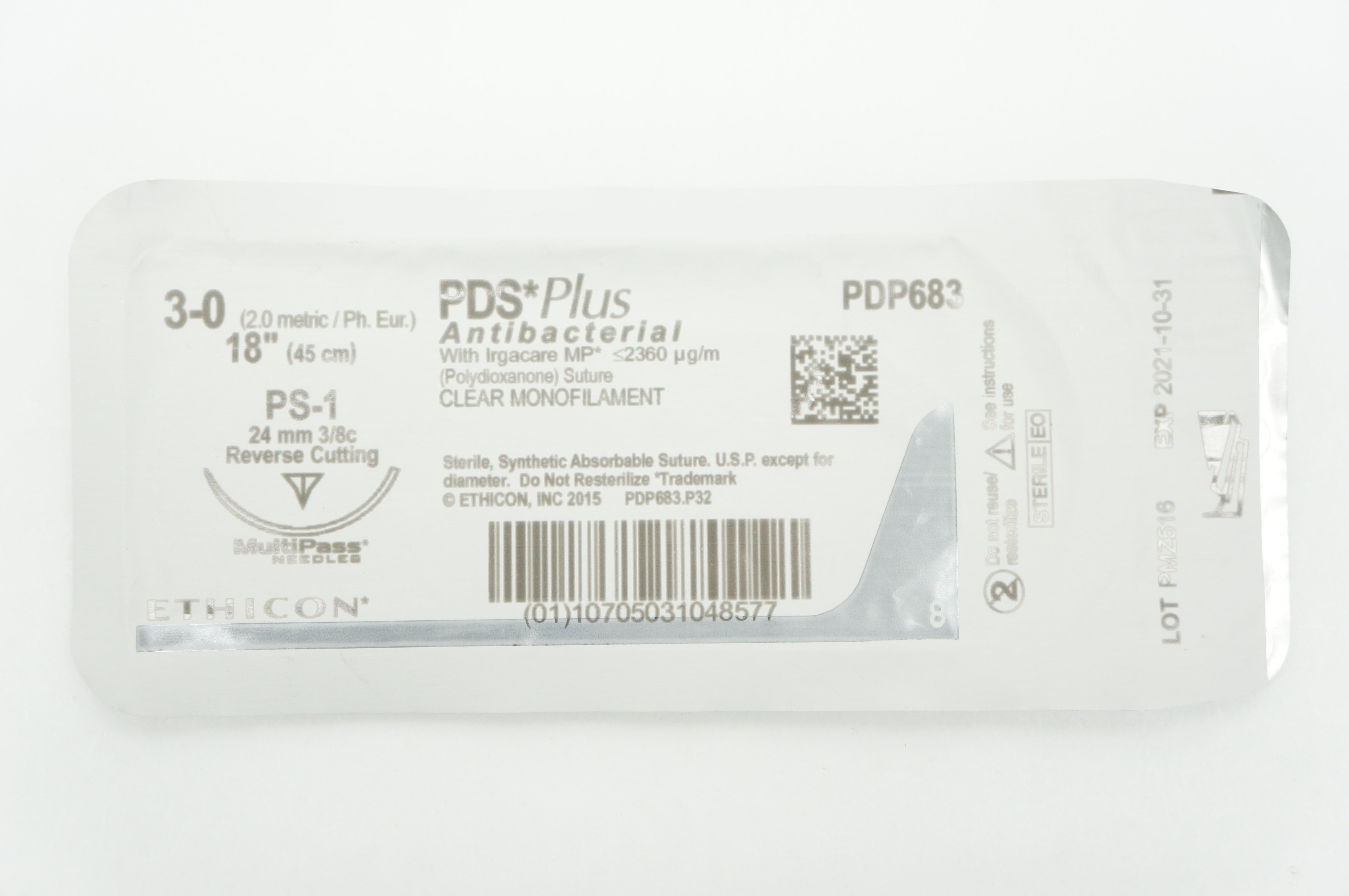 - Ethicon PDP683 3-0 PDS Plus, PS-1, 24mm 3/8c Reverse Cutting, 18inch (x)