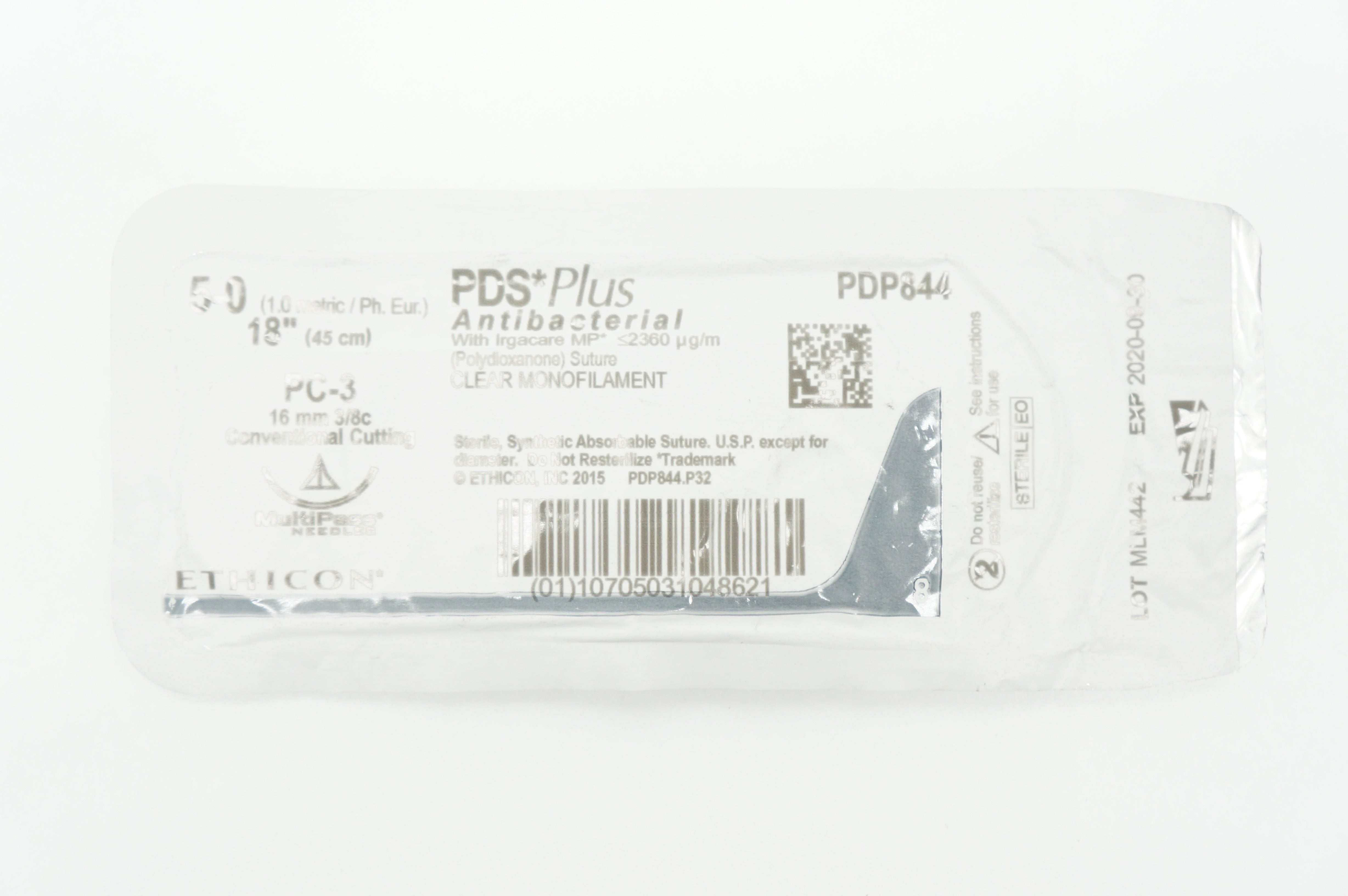 Ethicon PDP844 5-0 PDS Plus, PC-3, 16mm 3/8c, MultiPass, 18inch (x)