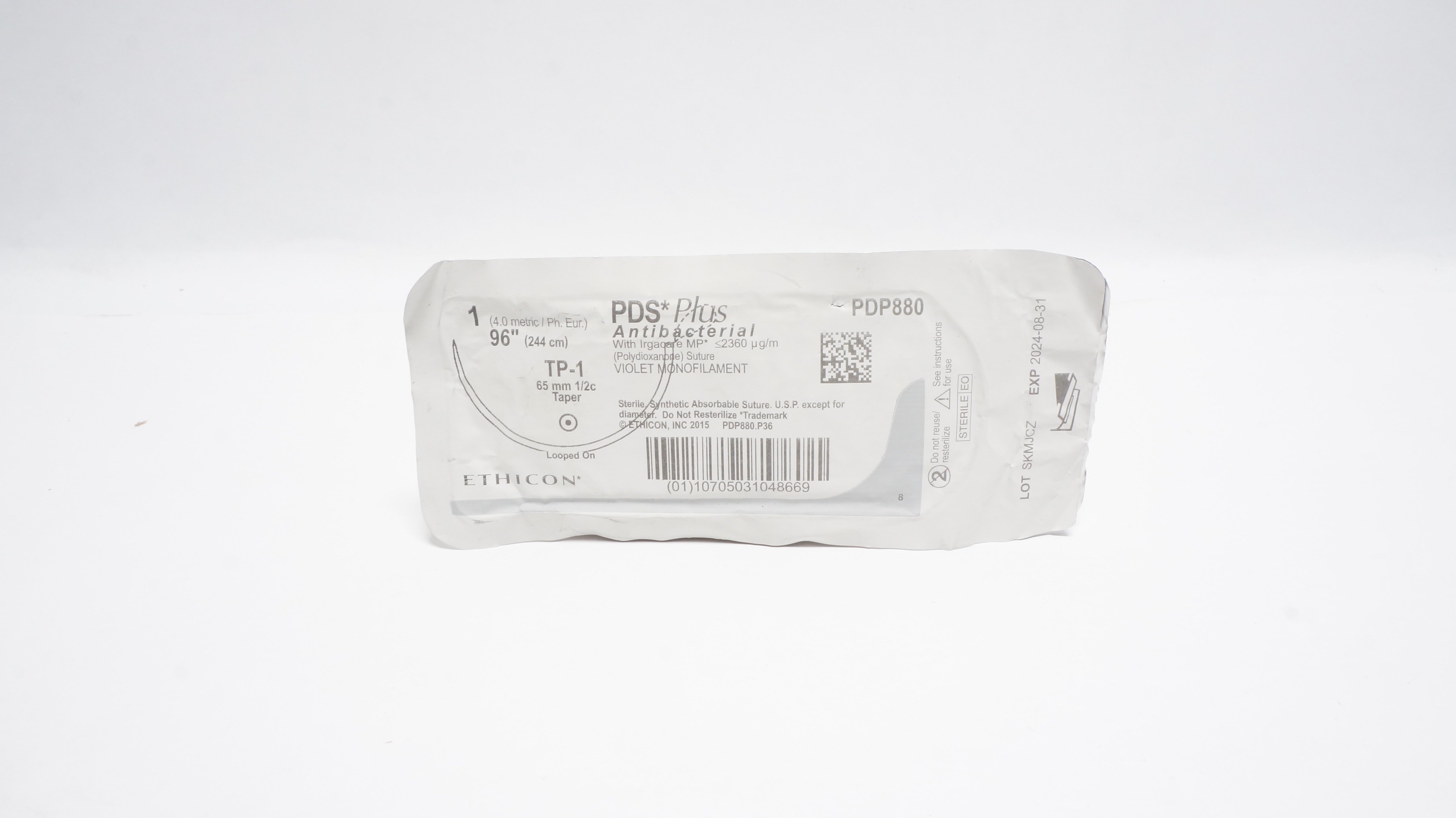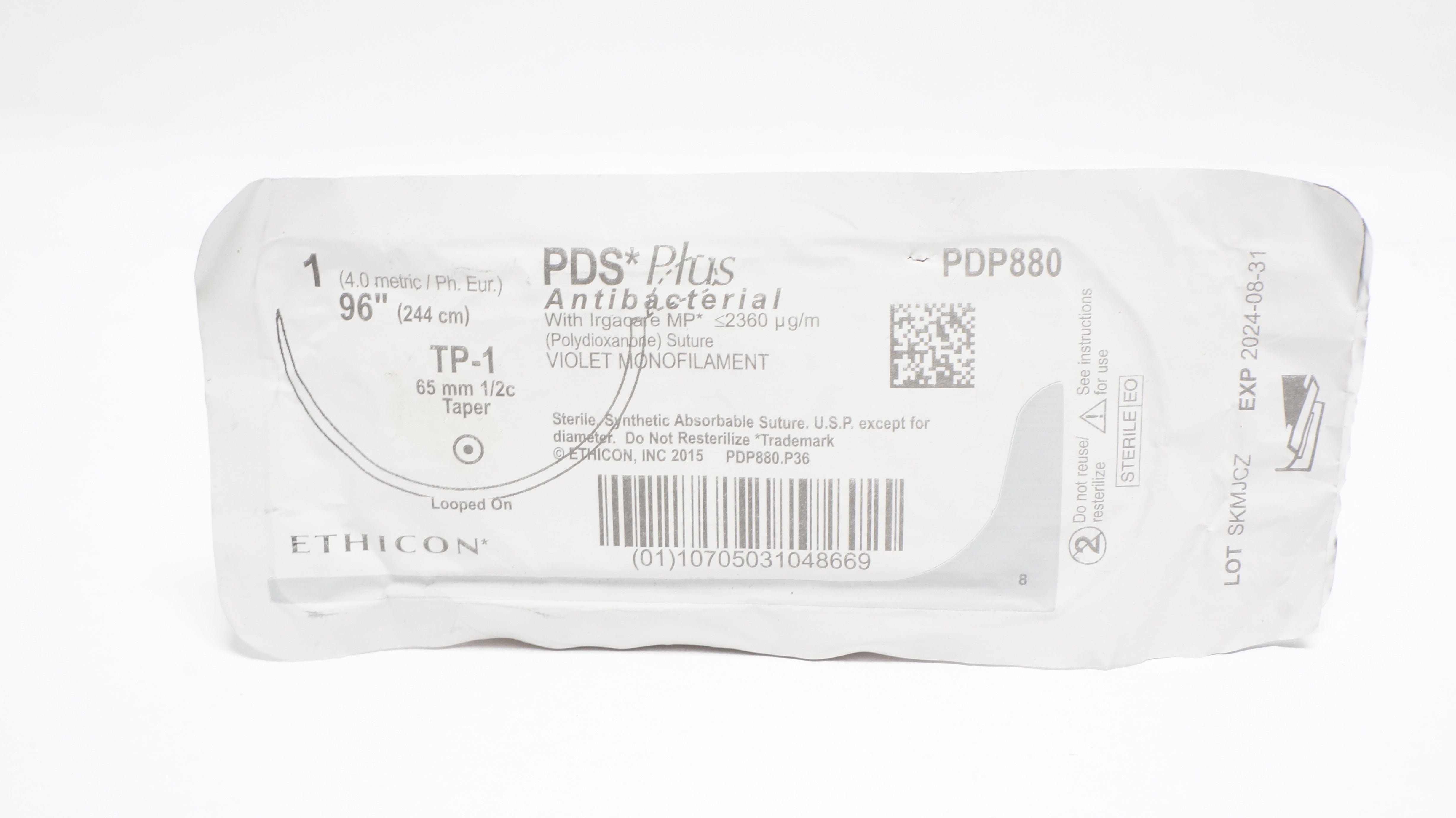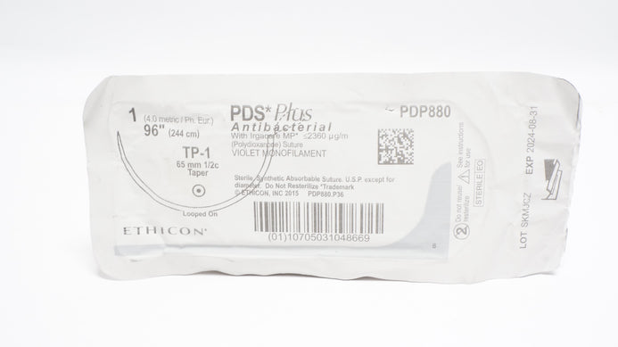 Ethicon PDP880 1 PDS Plus Antibacterial W/Irgacare MP Polydioxanone Suture Violet Monofilament TP-1 65mm 1/2c Taper 96inch