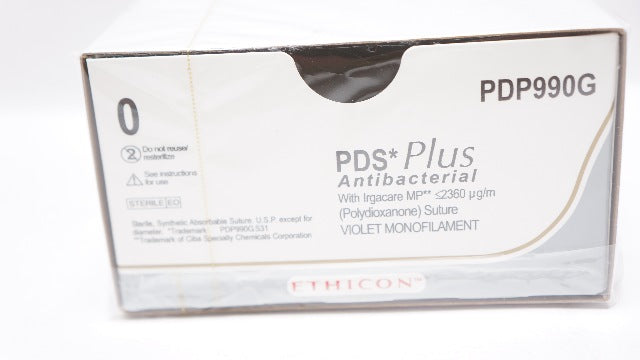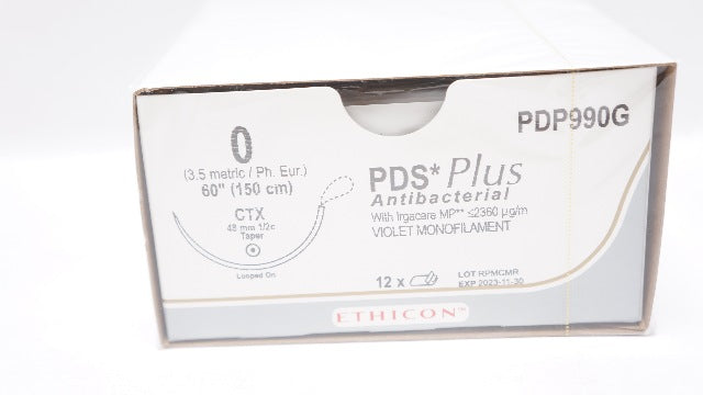 Ethicon PDP990G 0 PDS Plus Antibacterial Polydioxanone Suture Violet Monofilament CTX 48mm 1/2c Taper 60inch
