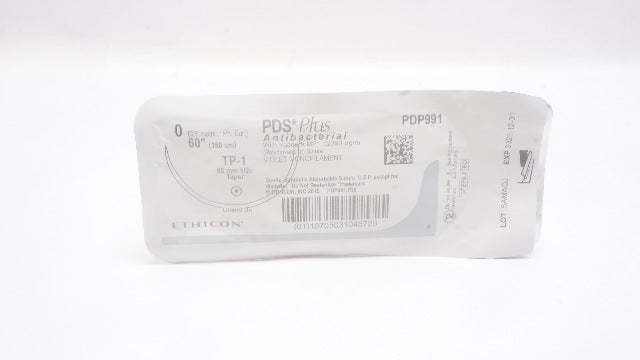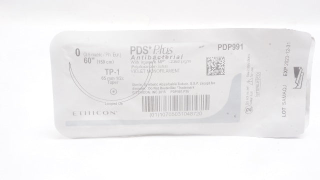 - Ethicon PDP991 0 PDS Plus Antibacterial Stre TP-1, 65mm 1/2c Taper, 60inch