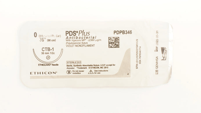 - Ethicon PDPB346 0 PDS Plus Antibacterial Sterile Stre CTB-1 36mm 1/2c, 36 inch