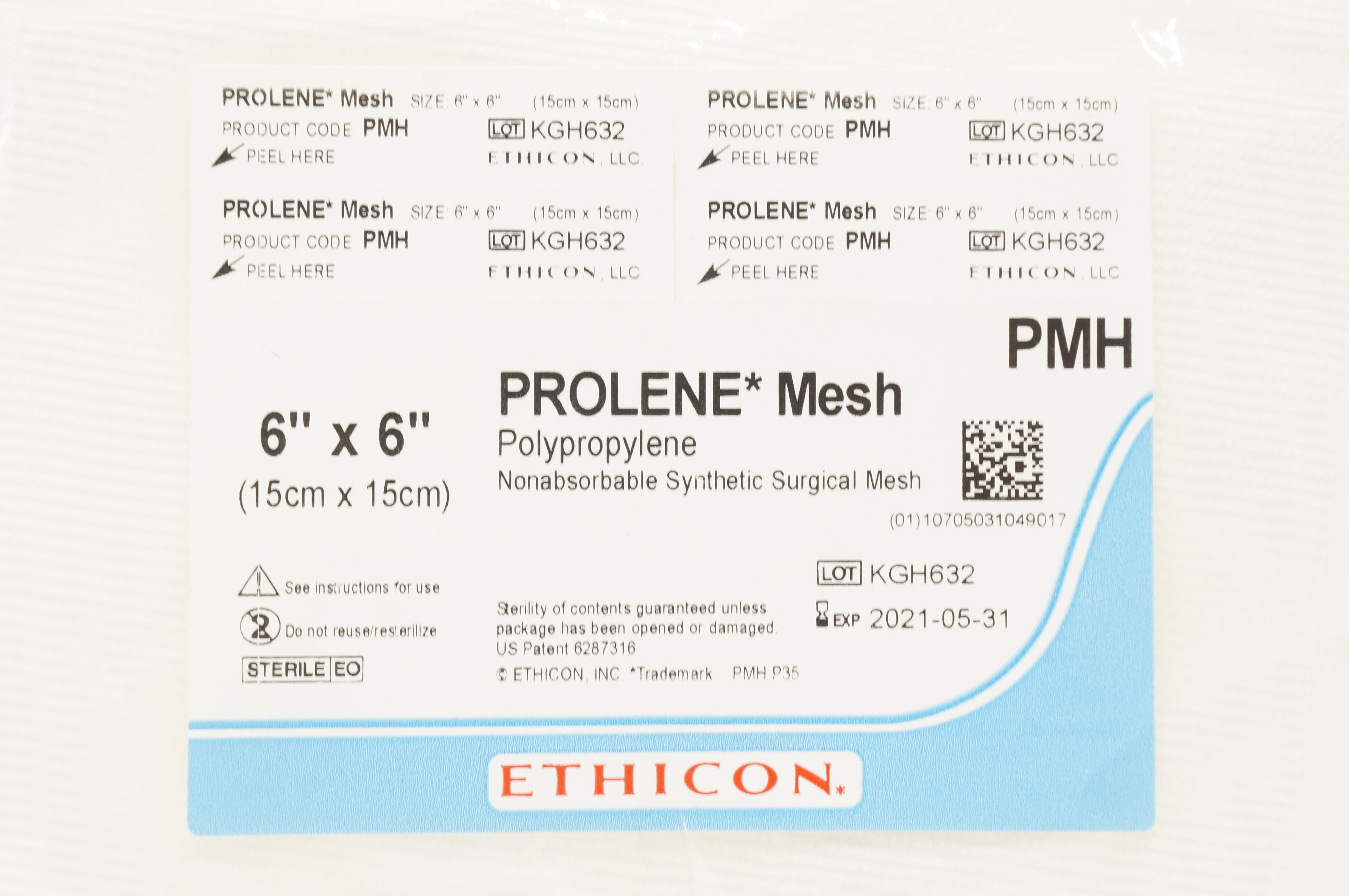 Ethicon PMH Prolene Soft Nonabsorbable Synthetic Surgical Mesh 6inch x 6inch (x)
