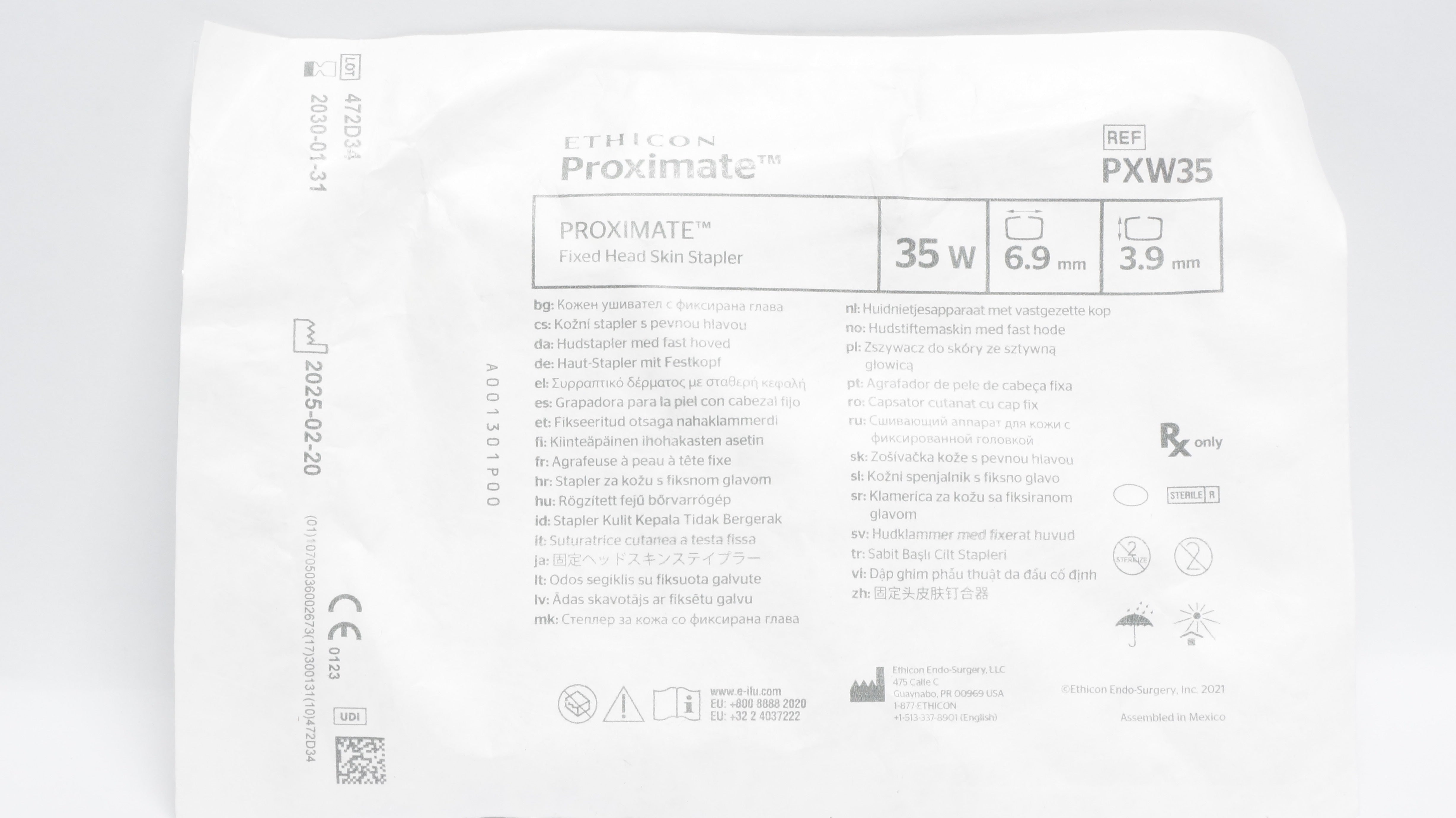 - Ethicon PXW35 1Proximate Skin Stapler 35 Stainless Steel Staples 6.9mm x 3.9mm