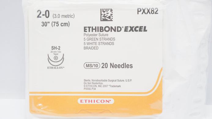 - Ethicon PXX82 2-0 ETHIBOND EXCEL, SH-2, 20mm 1/2c Taper, 30inch (X)