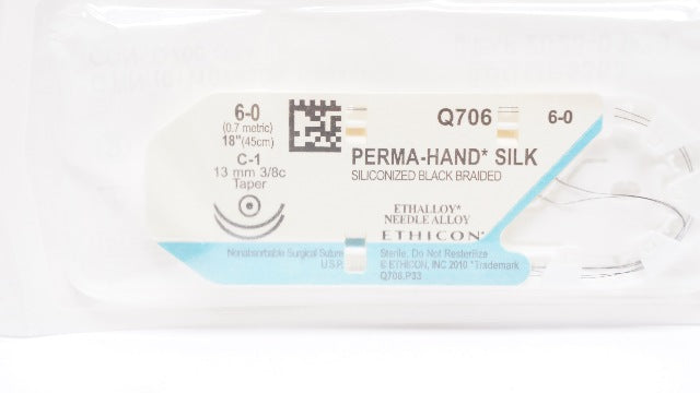 Ethicon Q706H 6-0 Perma-Hand Silk C-1 13 mm 3/8c Taper 18In (x)
