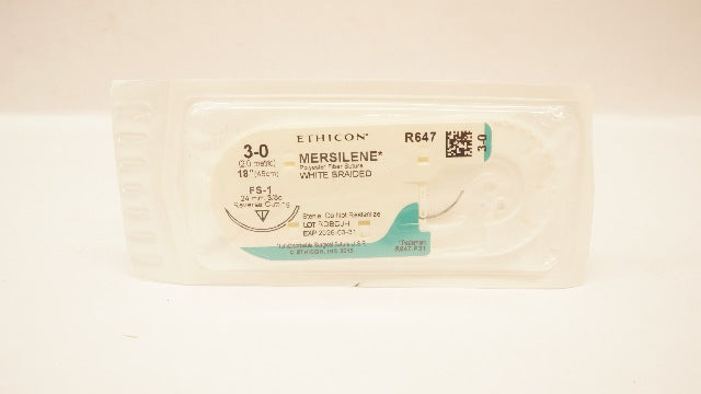 - Ethicon R647 3-0 MERSILENE Fiber Stre FS-1 24mm 3/8c Reverse Cutting, 18inch