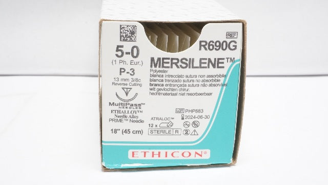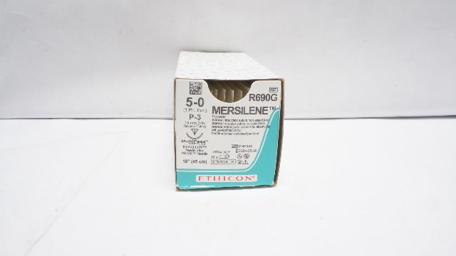 - Ethicon R690G 5-0 MERSILENE P-3, 13mm 3/8c Reverse Cutting, 18inch (x)-Box of 9