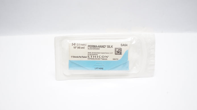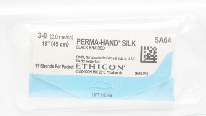 Ethicon SA64 3-0 Perma-Hand Silk Black Braided Stre, 18inch