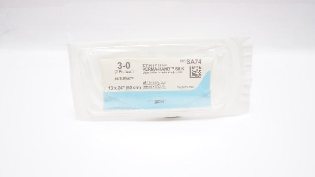 - Ethicon SA74 3-0 PERMA-HAND Silk Black Braided Suture 13In x 24in