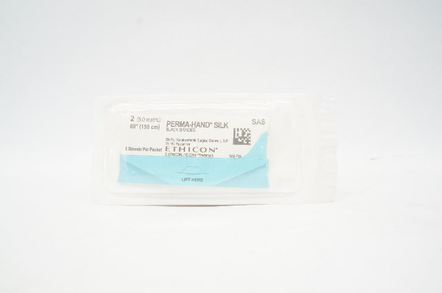 Ethicon SA8 2 Perma-Hand Silk, Black Braided Surgical Suture 60 inch, 2 Strands Per Packet