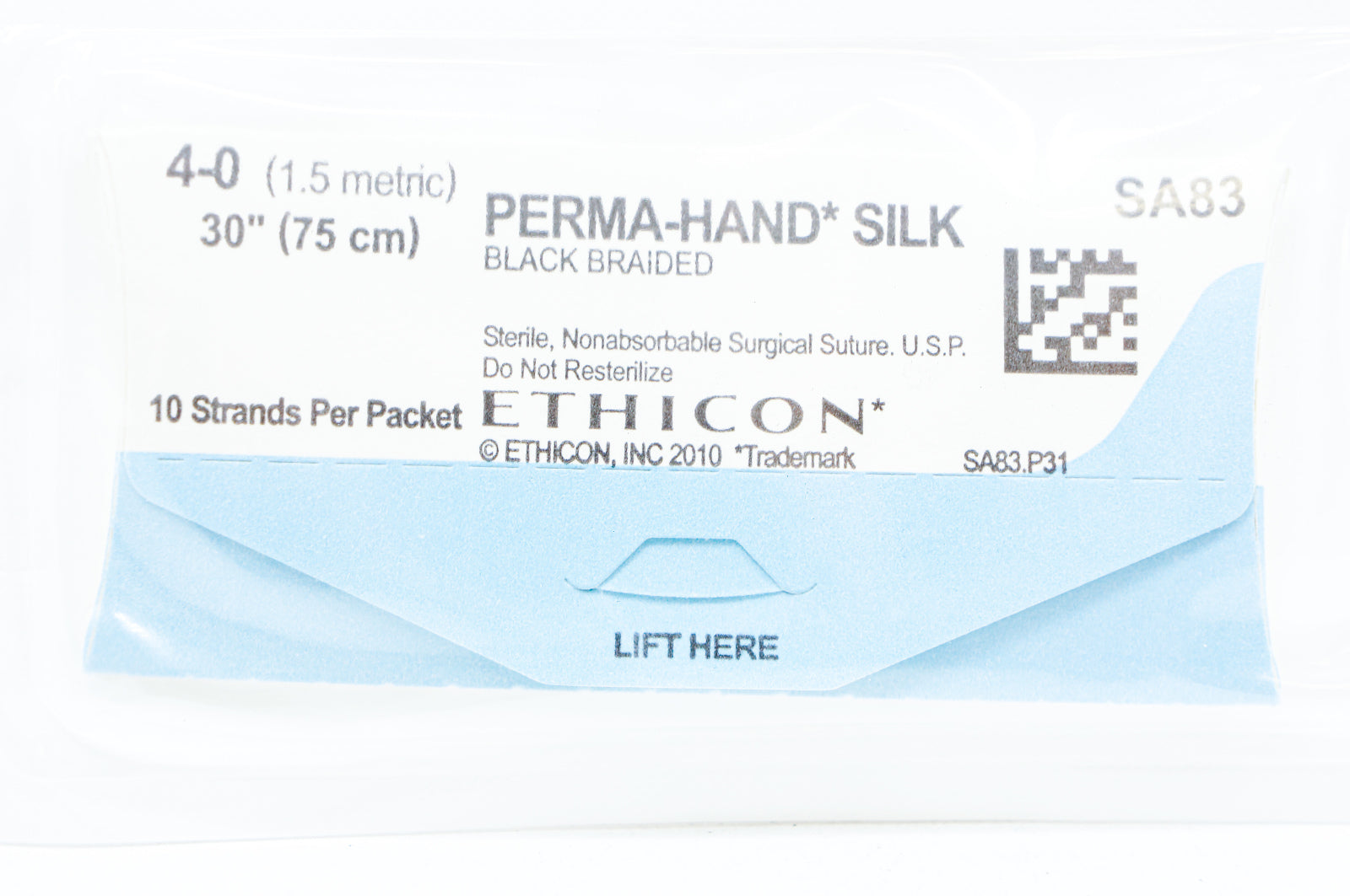 - Ethicon SA83 4-0 PERMA-HAND SILK, Black Braided, 30inch (x) - Lot of 32