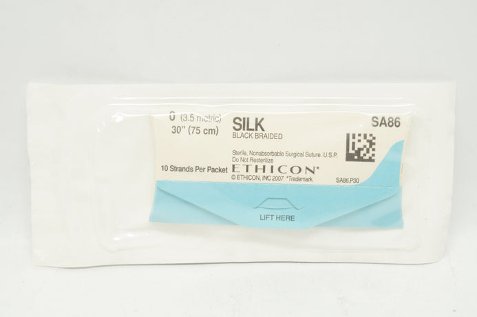 - Ethicon SA86 0 Silk Black Braided Stre 30inch (x) - Pack of 10
