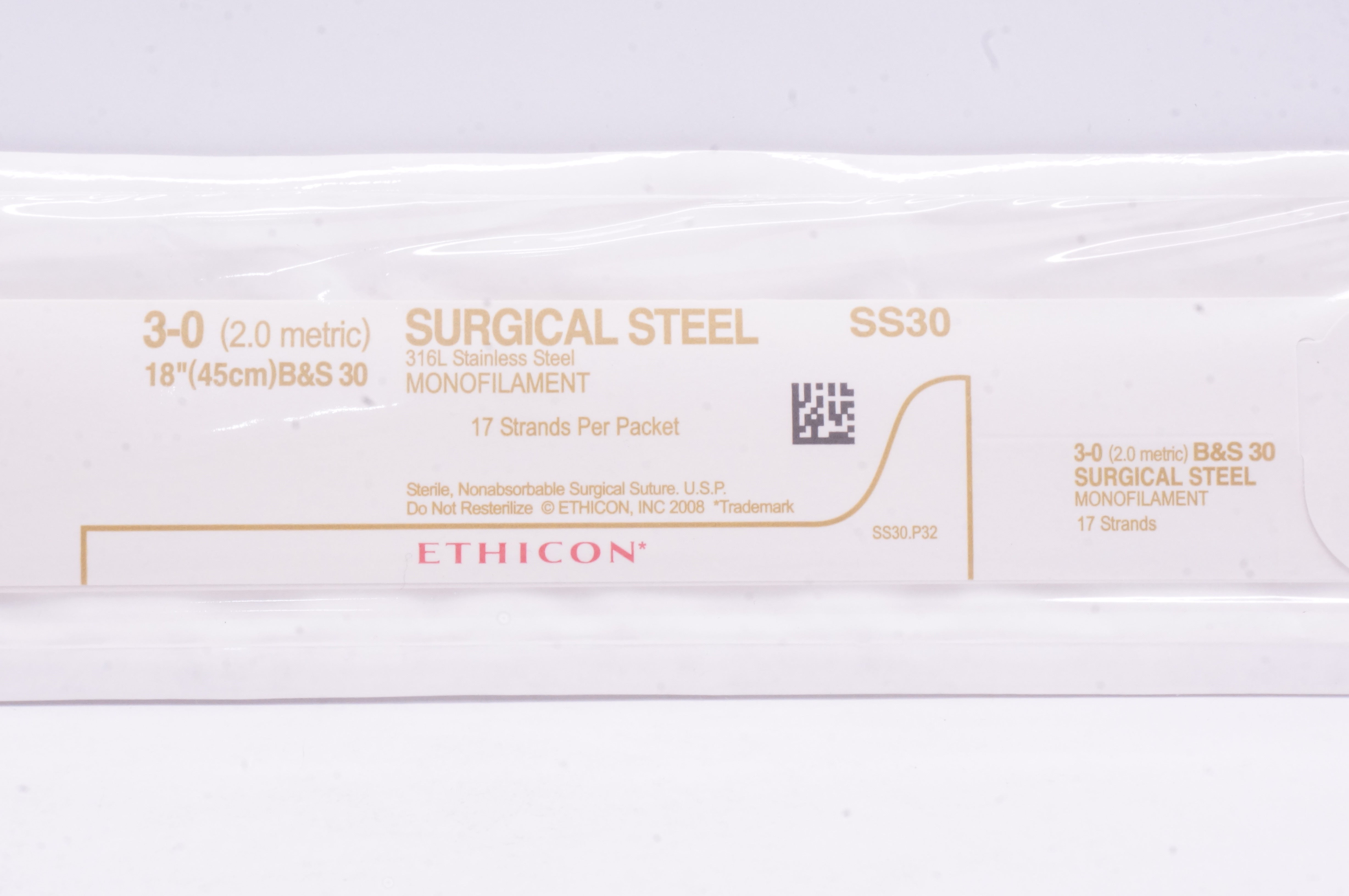 - Ethicon SS30 3-0 SURGICAL STEEL MONOFILAMENT B&S30, 18inch