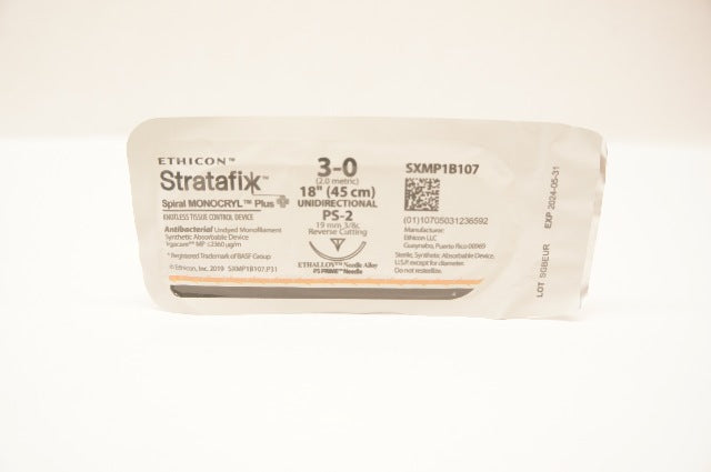 Ethicon SXMP1B107 3-0 Stratafix Spiral Monocryl Plus Antibacterial Undyed Monofilament Synthetic Absorbable Device PS-2 19mm 3/8c Reverse Cutting 18inch Undirectional