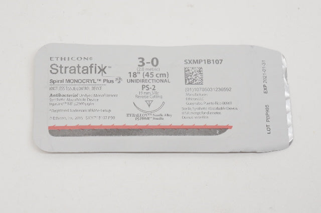 - Ethicon SXMP1B107 3-0 Stratafix, PS-2, 19mm 3/8c Reverse Cutting, 18inch