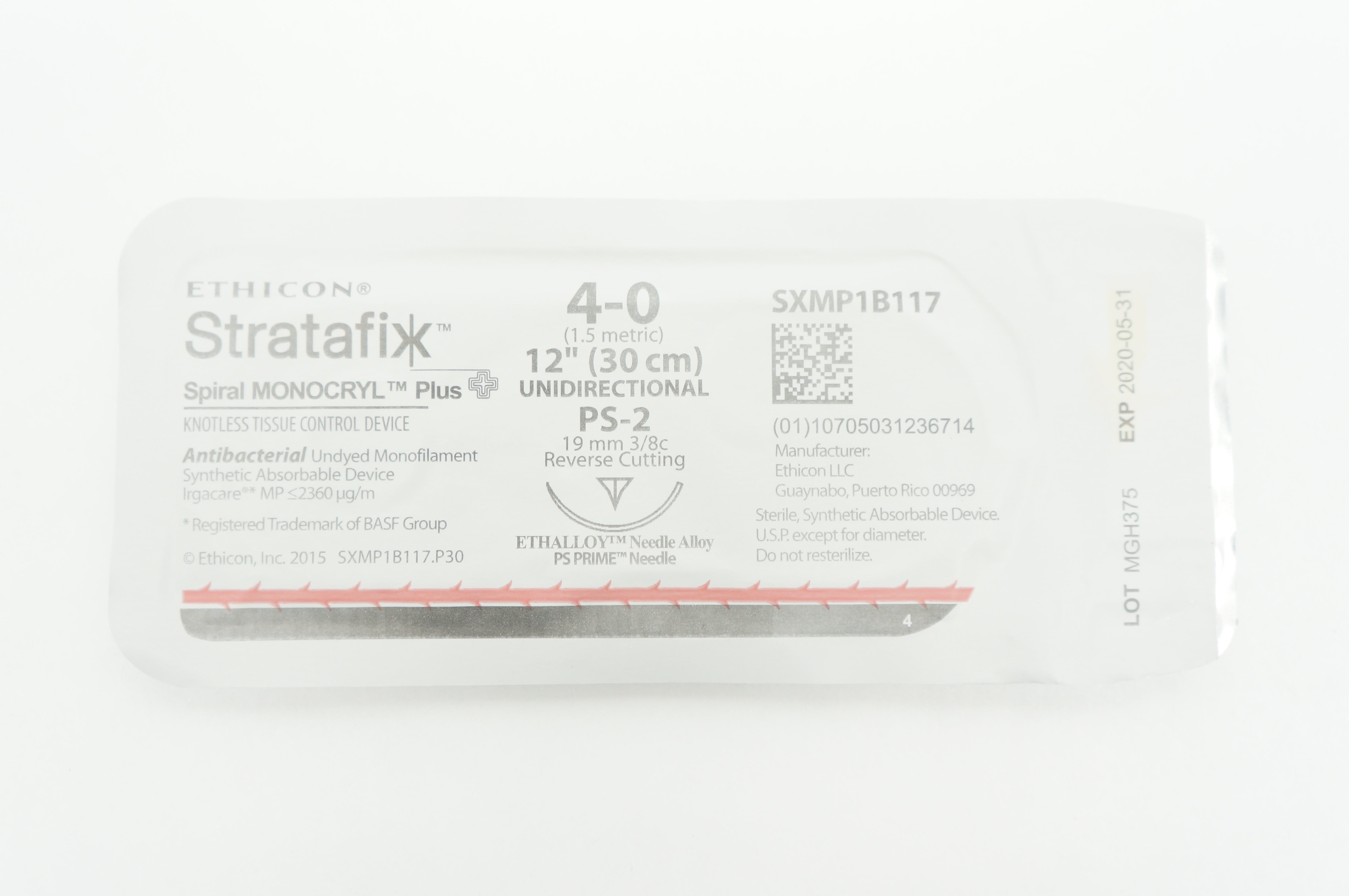 - Ethicon SXMP1B117 4-0 Spiral MONOCRYL Plus, P-2, 19mm 3/8c, 12inch (x)