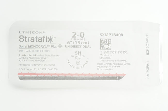 - Ethicon SXMP1B408 2-0 STRATAFIX Spiral MONOCRYL SH 26mm 1/2c Taper, 6inch