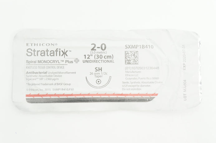 - Ethicon SXMP1B410 2-0 STRATAFIX Spiral MONOCRYL SH 26mm 1/2c Taper, 12in(x)