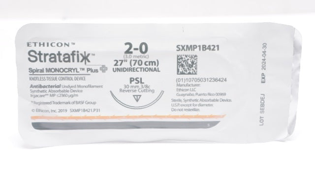 - Ethicon SXMP1B421 2-0 Stratafix Stre PSL 30mm 3/8c Reverse Cutting, 27inch (x)