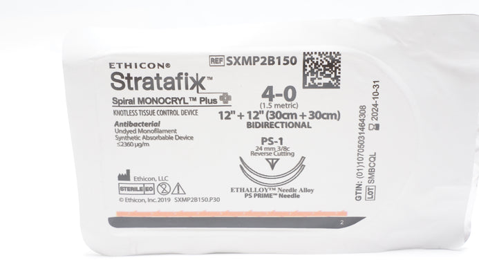 - Ethicon SXMP2B150 4-0 Stratafix Spiral Monocryl Plus 12in+12in PS-1 24mm 3/8c