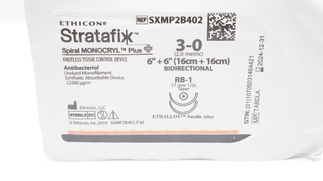 Ethicon SXMP2B402 3-0 Stratafix Spiral Monocryl + 6In + 6In RB-1 17mm 1/2c Taper