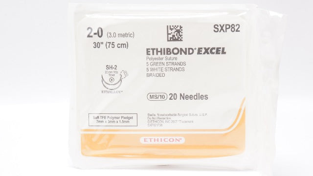 Ethicon SXP82 2-0 Ethibond Excel Polyester Suture Braided SH-2 20mm 1/2c Taper 30inch