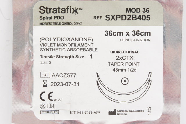 Ethicon SXPD2B405 Stratafix Spiral PDO Knotless Tissue Control Device 2xCTX Taper Point 48mm 1/2c, 36cm x 36cm