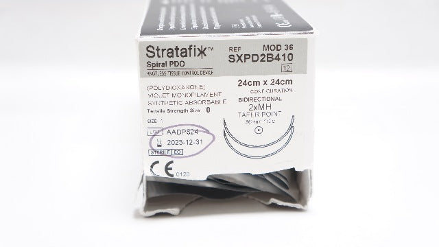 Ethicon SXPD2B410 0 Stratafix Spiral PDO Violet Monofilament Synthetic Absorbable, 2xMH Taper Point 36mm 1/2c, 24x 24cm