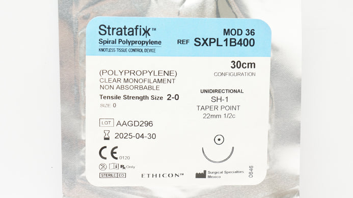 - Ethicon SXPL1B400 2-0 STRATAFIX SH-1 Taper Point 22mm 1/2c Unidirectional 30cm