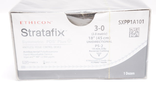 - Ethicon SXPP1A101 3-0 STRATAFIX PS-2 19mm 3/8c Reverse Cutting 18in(x)-Box of 12