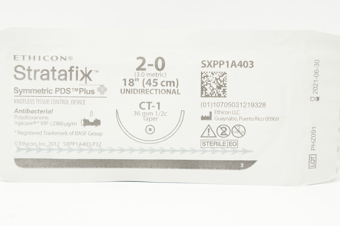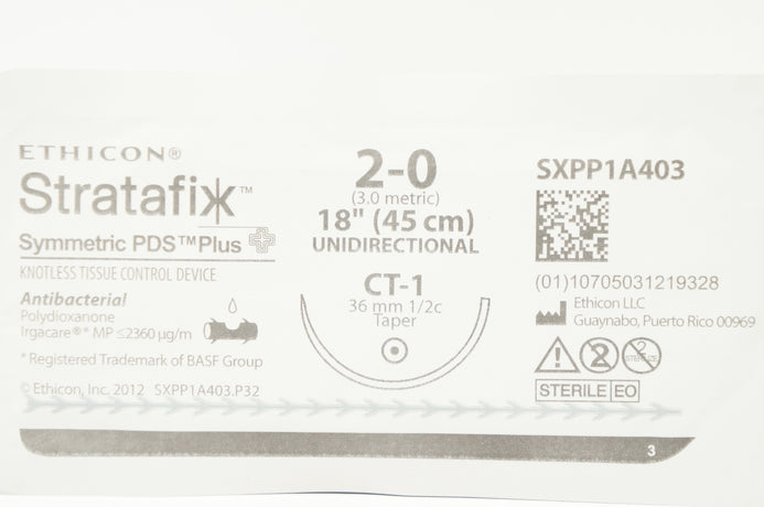 Ethicon SXPP1A403 2-0 Symmetric PDS Plus Knotless Tissue Control Device Antibacterial Polydioxanone irgacare MP ≤2360µg/m CT-1 36mm 1/2c Taper, 18 inch