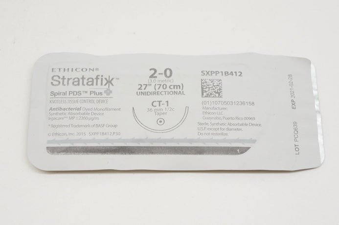 - Ethicon SXPP1B412 2-0 Stratafix, Spiral PDS Plus, CT-1, 36mm 1/2c Taper, 27inch