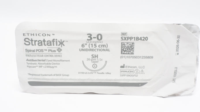 - Ethicon SXPP1B420 3-0 Stratafix Spiral PDS Stre SH 26mm 1/2c Taper, 6inch