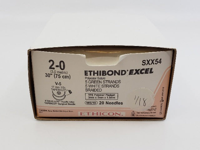 - Ethicon SXX54 2-0 ETHIBOND EXCEL, V-5, 13mm 1/2c TAPERCUT, 30in. ~Box of 12(x)