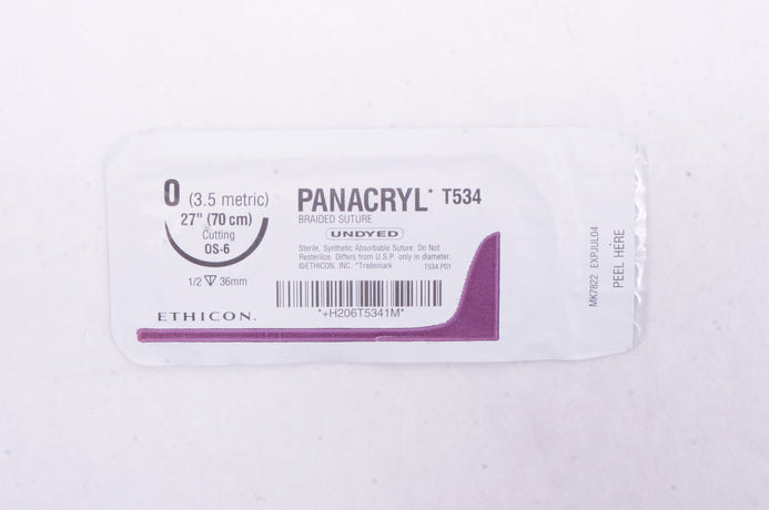- Ethicon T534 0 Panacryl Braided Stre, Cutting OS-6, 36mm 1/2, 27inch (x)